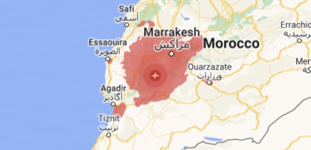 ৬.৮ মাত্রার ভূমিকম্পটি পর্যটন কেন্দ্র মারাকেশের ৭২ কিলোমিটার (৪৫ মাইল) দক্ষিণ-পশ্চিমে ভারতীয় সময় শনিবার ভোর ৩ টা ৪১ মিনিটে আঘাত হানে। গত ১২০ বছরের মধ্যে উত্তর আফ্রিকায় এটি সবথেকে শক্তিশালী ভূমিকম্প – ইউনাইটেড স্টেটস জিওলজিক্যাল সার্ভে রিপোর্টে এমনই বলা হয়েছে।